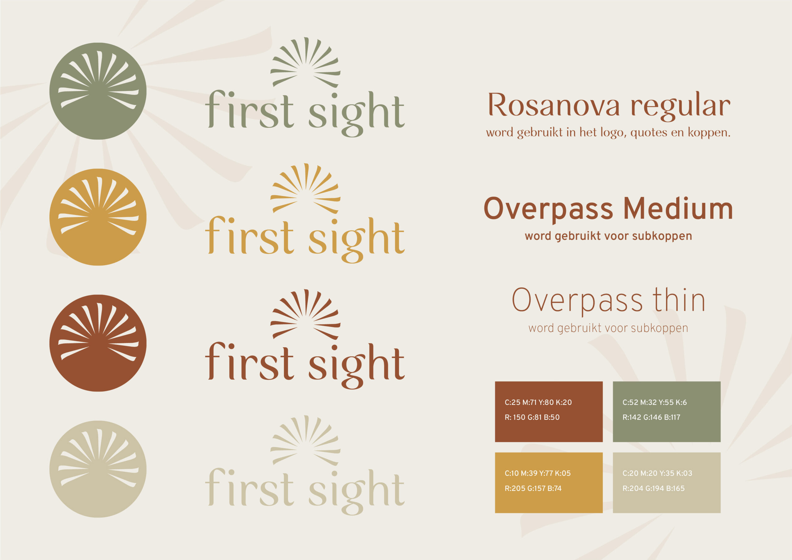 Door marktonderzoek weten we wat er speelt in de wereld van (toekomstige) ouders en echografiebureaus. Door dieper in gesprek te gaan met Karin en Ellen is het concept tot stand gekomen. Het bos in de ochtendzon staat net als First Sight voor rust, geborgenheid/warmte, vertrouwen en de levenscyclus.